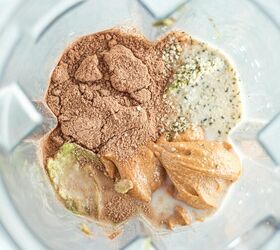 - Add the almond milk, peanut butter, cacao powder, Swerve and hemp hearts to the blender. Blend at medium speed until smooth.