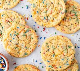 Rainbow sprinkles promote festive fun in baked goods, from cookies to cakes. This funfetti cake mix cookie recipe brings birthday cake flavor to rich buttery cookies. Utilizing cake mix makes this recipe a breeze. Like in mini funfetti cheesecakes, the best part of this recipe is the colorful sprinkles.